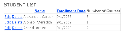 再次執行 [Students.aspx ] 頁面,您會看到日期現在不顯示時間: