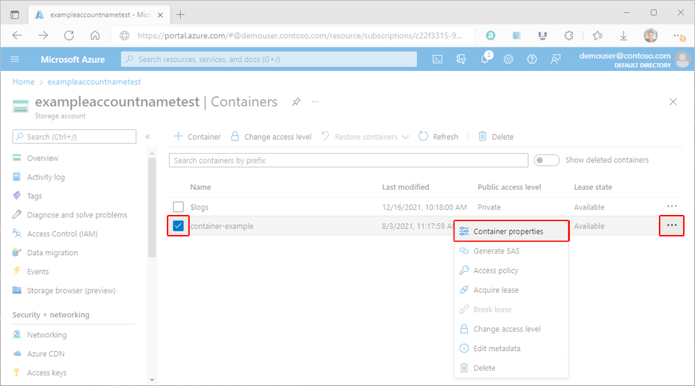 選取容器的 [ 更多 ] 按鈕 (...),然後選取 [編輯中繼資料] 以顯示 [容器中繼資料] 窗格。