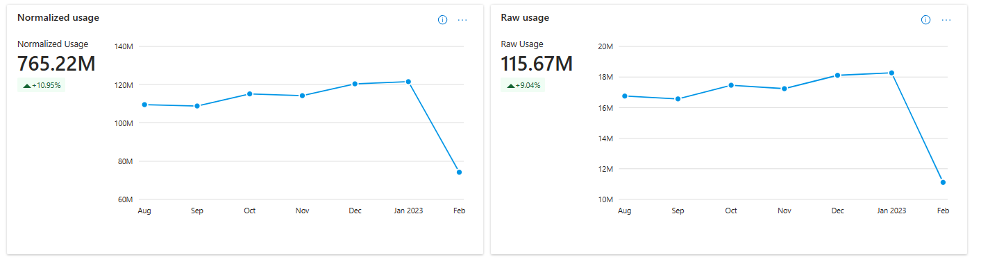 您可以針對每個維度查看使用量計量和每月趨勢。