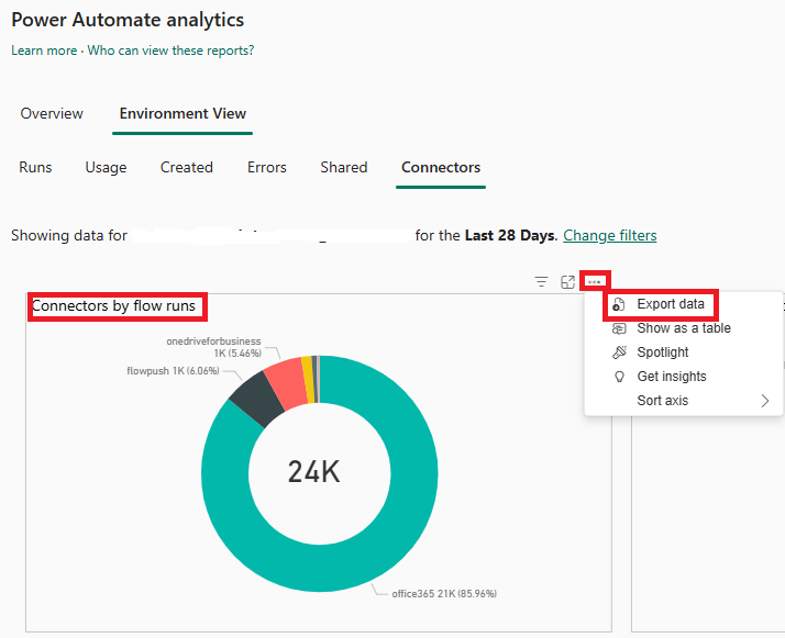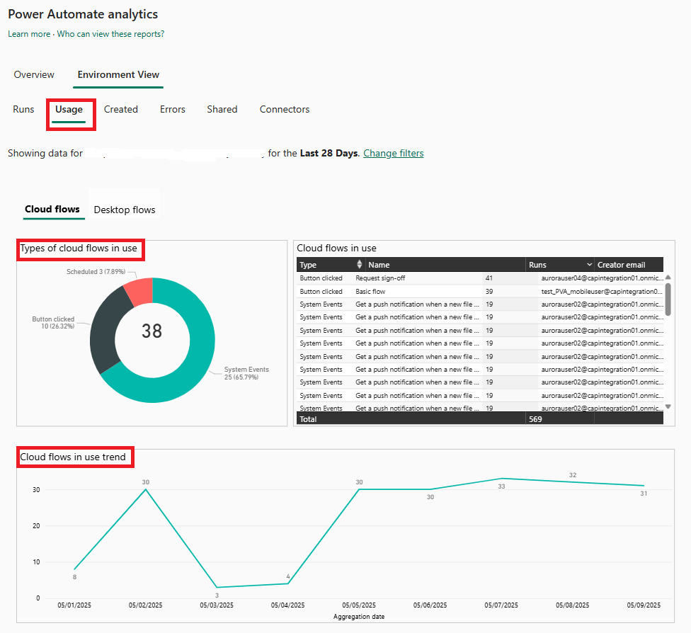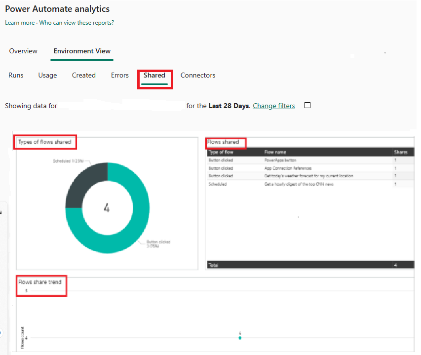 - 查看 Power Automate 分析頁面上的報告。