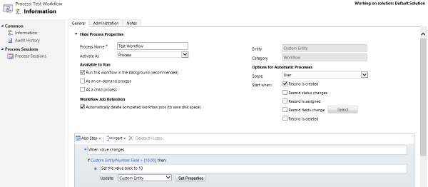 打開工作流程查看工作流程詳細資訊時,然後找到您不再希望工作流程依賴的元件的參考。 在此範例中,您會觀察程序步驟中參考的欄位 Number Field 。