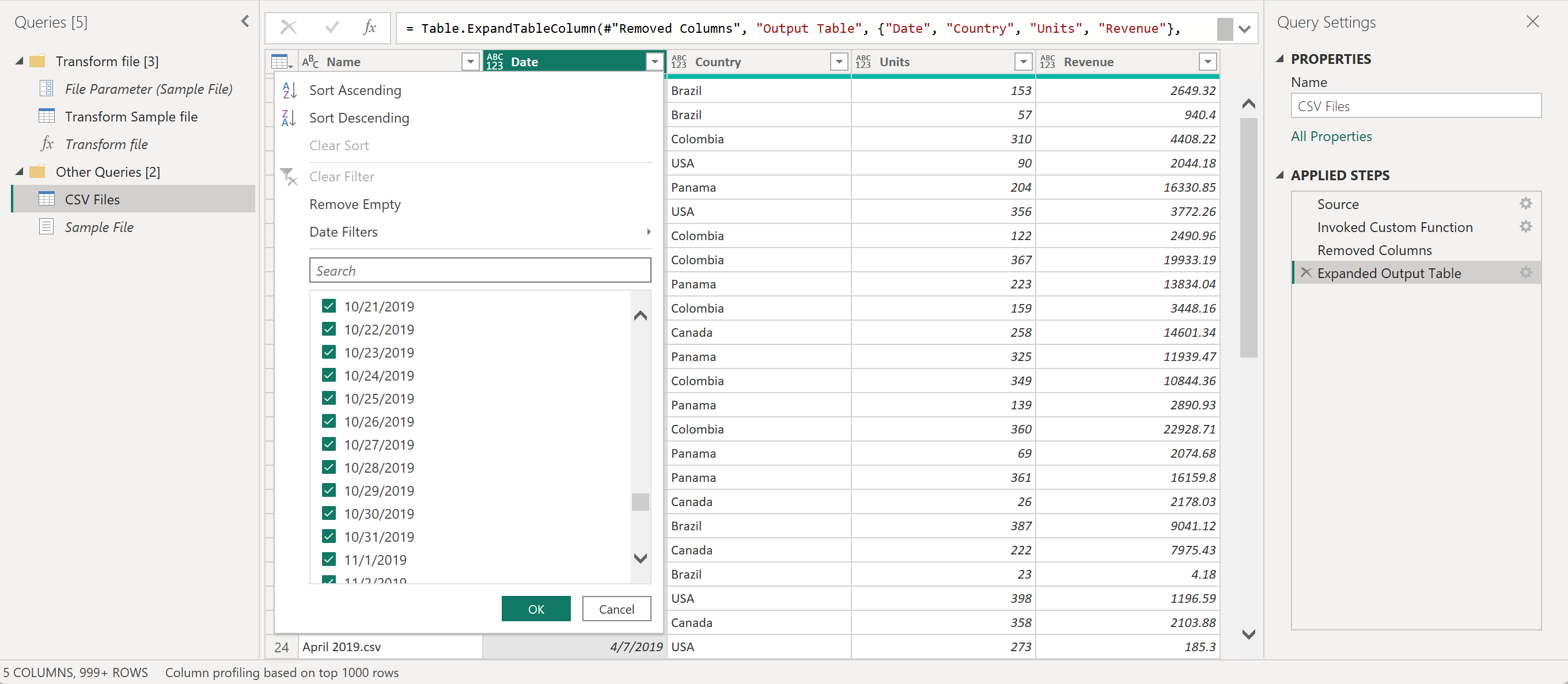 您的 轉換檔案 函式仰賴 轉換範例檔案 查詢中執行的步驟。 不過,如果您嘗試手動修改 轉換文件的 函式程式碼,您將會收到顯示 The definition of the function 'Transform file' is updated whenever query 'Transform Sample file' is updated. However, updates will stop if you directly modify function 'Transform file'. 的警告。