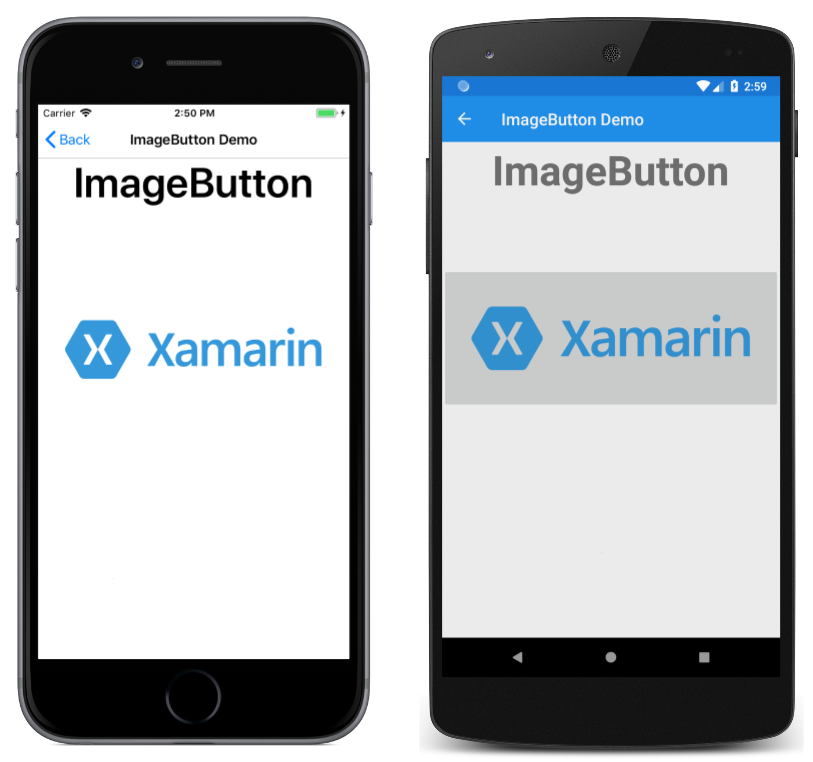 屬性 Source 會指定 出現在中的 ImageButton影像。 在此範例中,它會設定為將從每個平台專案載入的本機檔案,併產生下列螢幕快照: