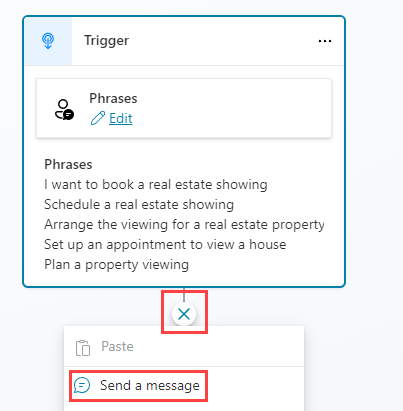 Select the + icon under the Trigger node and select Send a message.
