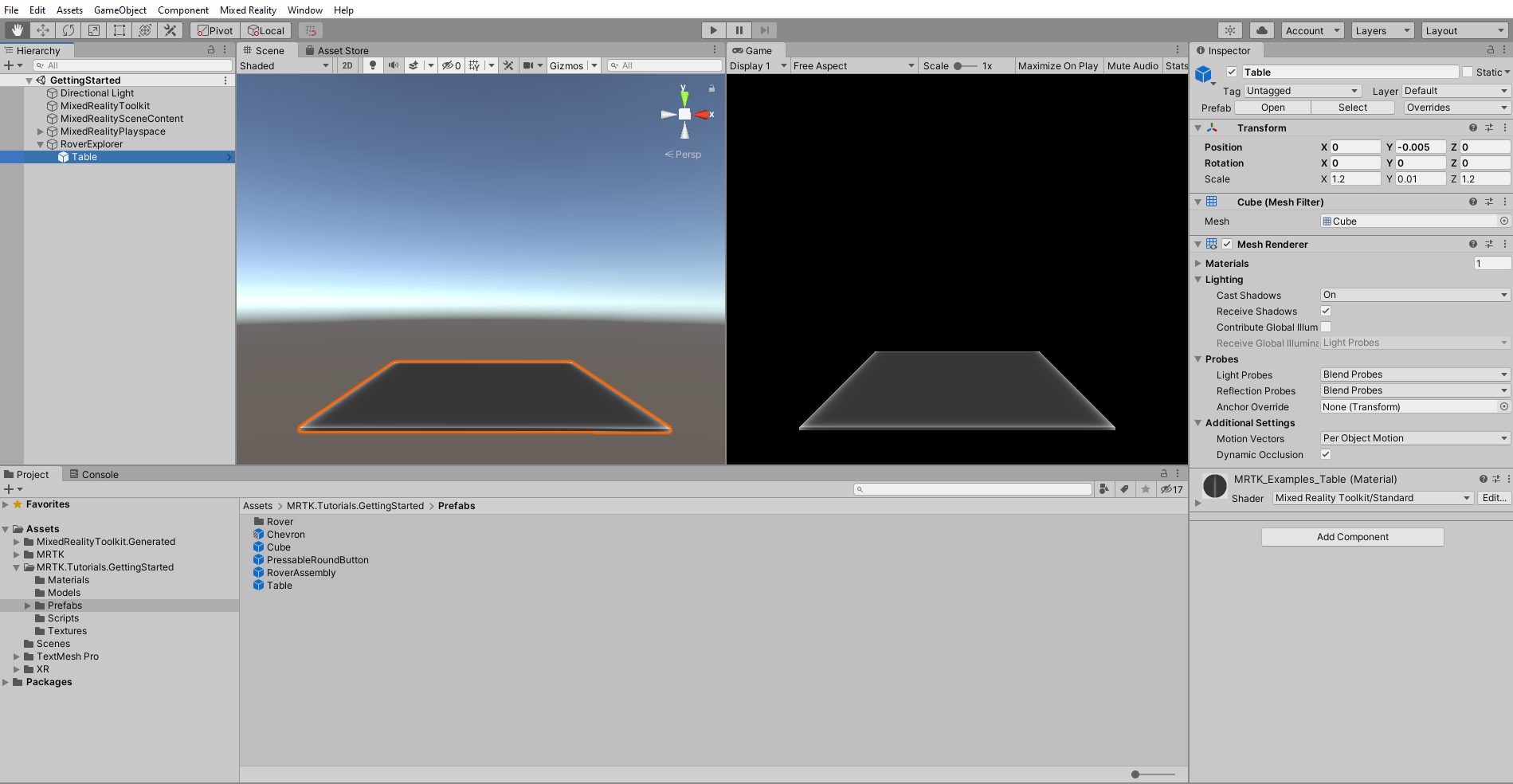 在 [專案] 視窗中,移至 [資產]> [MRTK.Tutorials.GettingStarted]>[預製物件] 資料夾。