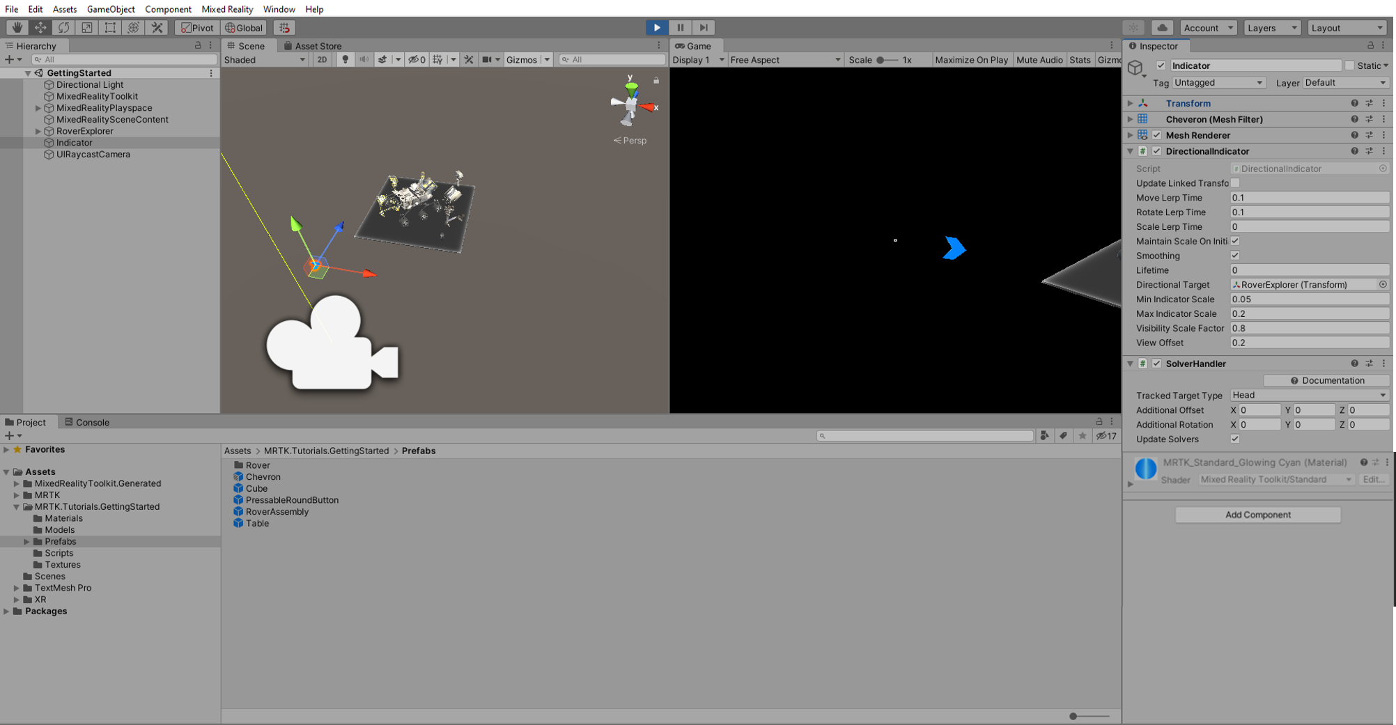 請注意,當您遠離 RoverExplorer 物件時, Indicator 物件會出現並指向 RoverExplorer 物件。