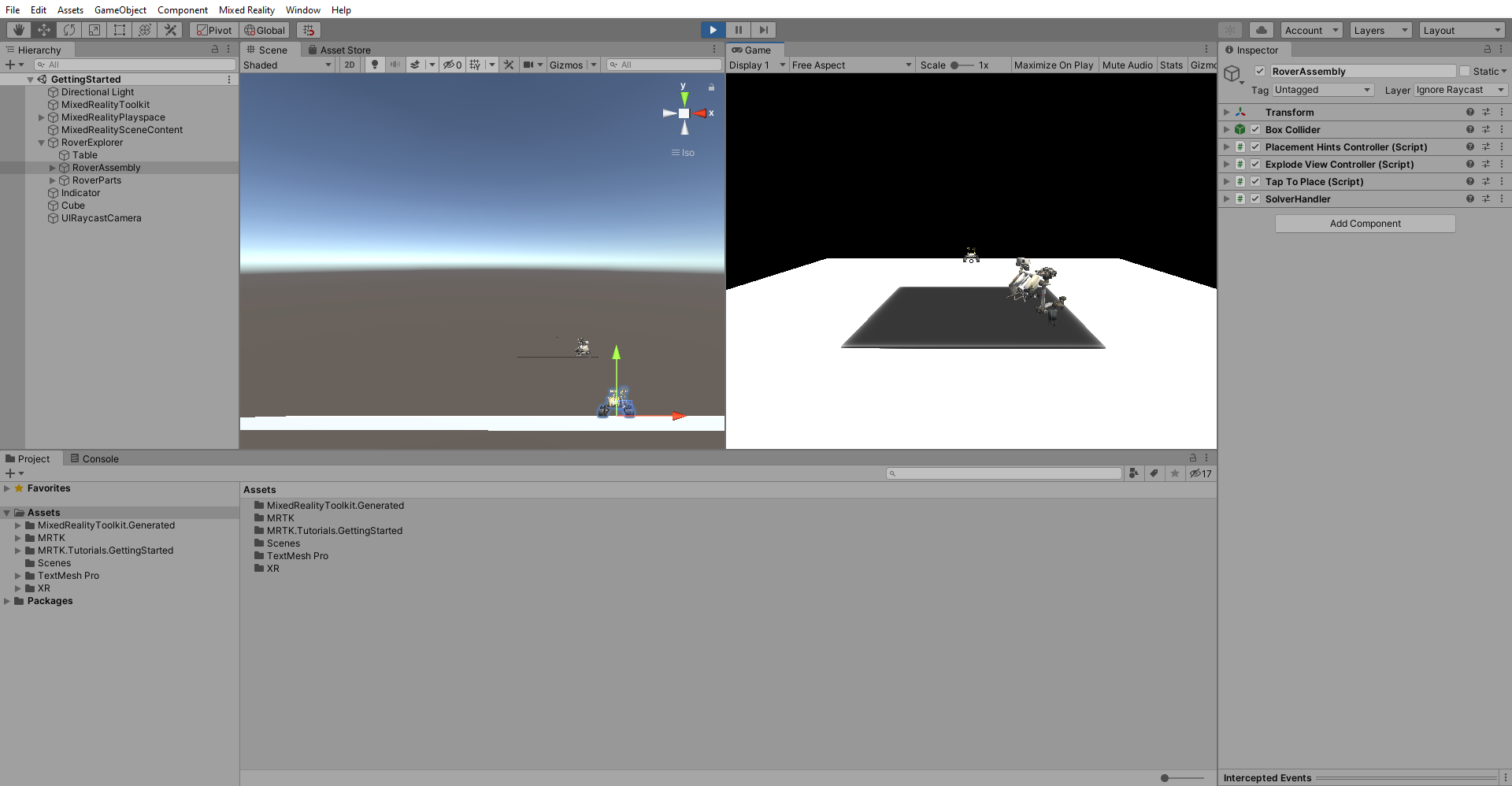 一。 將 RoverAssembly 物件指派為 On Placing Started () 事件的接聽程式,方法是將它從 階層 拖曳至 無 (物件) 字段。