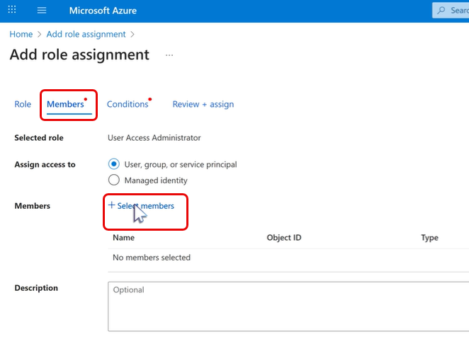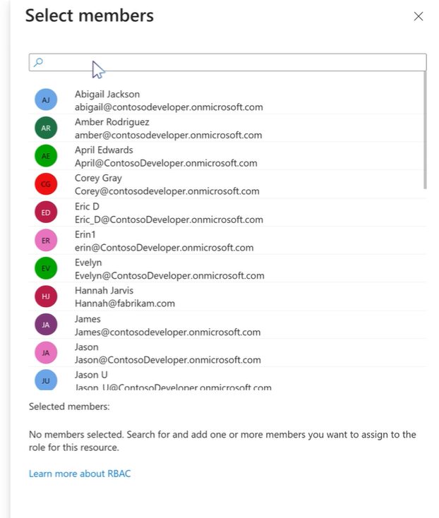 在 新增角色 指派畫面中,在「成員」中選擇 「選擇成員」。